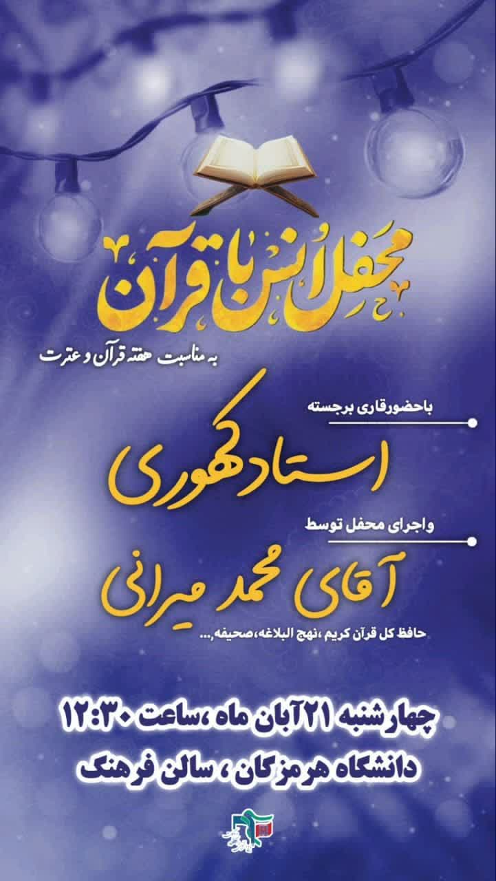 دعوت به حضور در «محفل انس با قرآن» در دانشگاه هرمزگان به مناسبت هفته قرآن و عترت